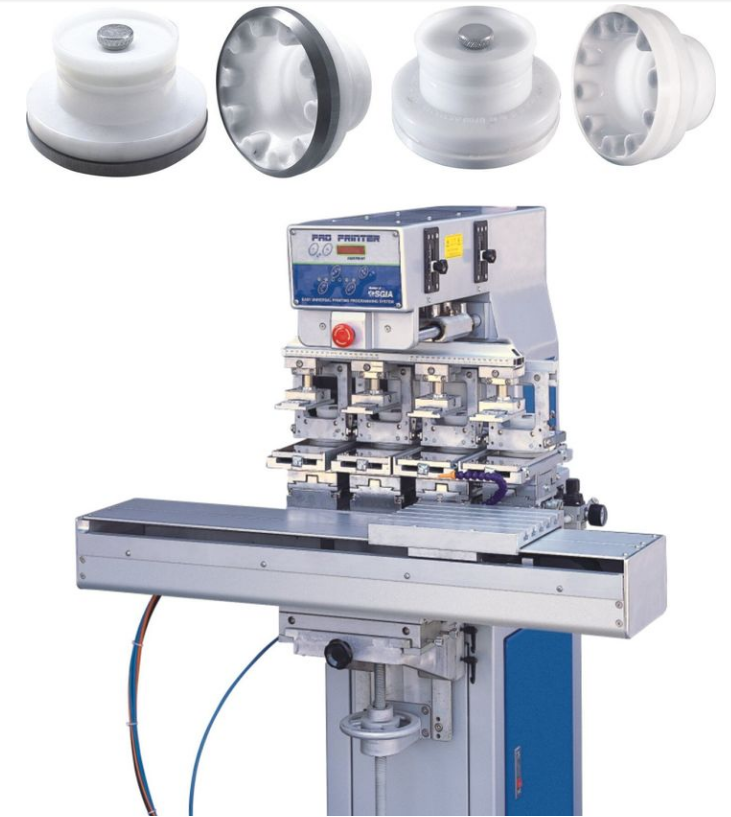 上面這個圖片就說移印機,移印機的工作原理就說通過上圖中的移印機膠頭粘上油墨后,然后像蓋章一樣蓋到產品上。移印機和絲印機都能印刷多色,但是顏色越多自然印刷成本越高,同時印刷面積越大,機器價格也會越高!那到底什么產品需要用移印機來印刷,什么產品需要用絲印機來印呢?